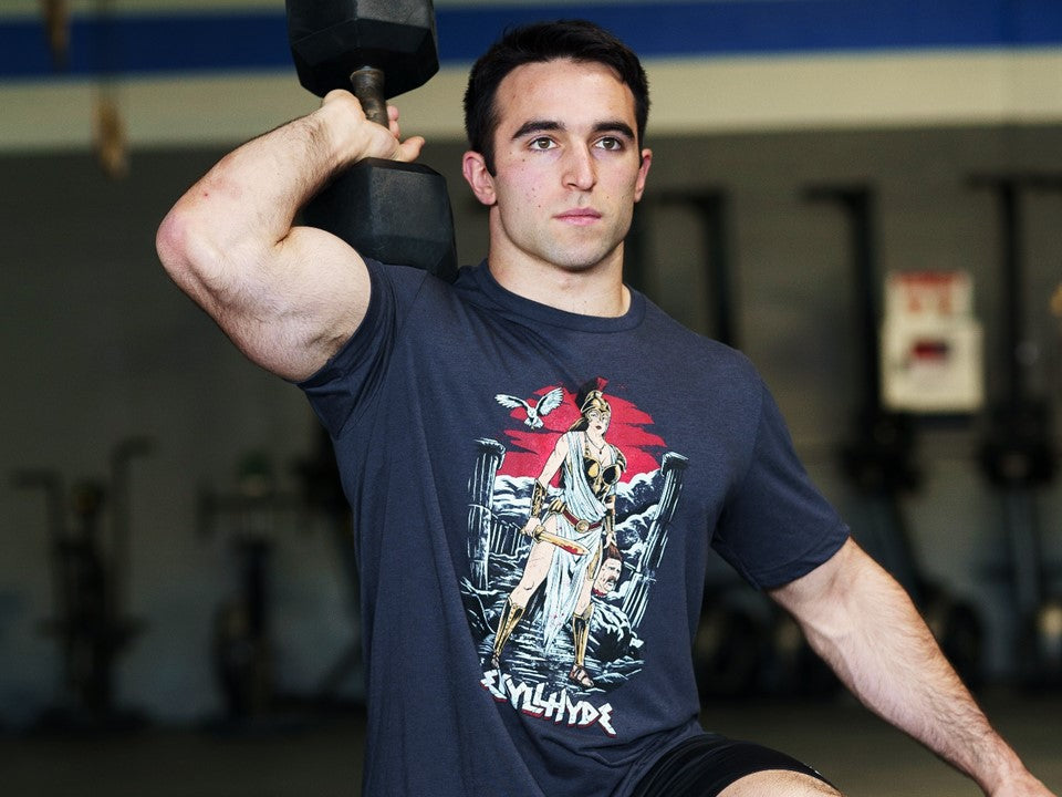 Lightweight and soft, the shirt feels like one you've had your whole life. 4.2 oz. 50% Polyester, 25% Cotton, 25% Rayon.