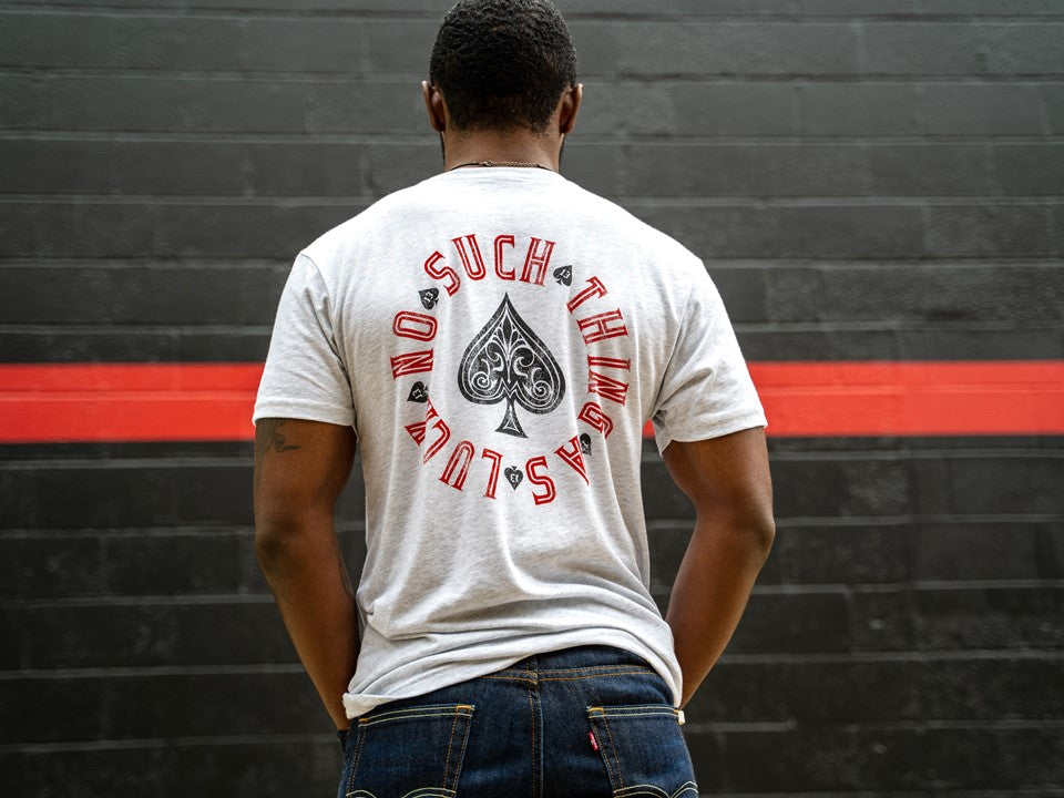 Originally intended only for our No Luck hoodie, the 'No Such Thing As Luck' design appealed to so many that our customers requested on a t-shirt... So here it is! No Such Thing As Luck is a mindset. It speaks volumes about who you are and where you're going. You work hard. You don't want handouts, and everything you do is earned- never given.